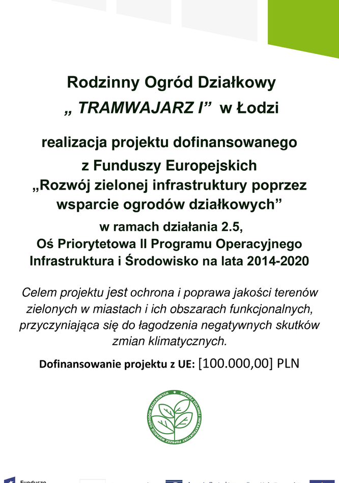 „ROZWÓJ ZIELONEJ INFRASTRUKTURY POPRZEZ WSPARCIE OGRODÓW DZIAŁKOWYCH -ZWIĘKSZENIE ŚWIADOMOŚCI ŚRODOWISKOWEJ I EKOLOGICZNEJ MIESZKAŃCÓW”